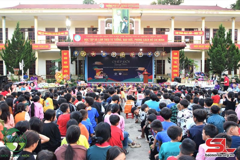 Ngoài ra, Đoàn đã tổ chức gala đón Tết Trung thu năm 2023 với chủ đề “Ghép đôi trăng tròn” cho hơn 1.000 học sinh Trường mần non, tiểu học và THCS Chiềng Khừa, với những tiết mục đặc sắc, như: Múa lân, rước đèn ông sao, hoạt cảnh “Chị Hằng, chú Cuội” và các tiết mục văn nghệ xen lẫn đố vui có thưởng, phá cỗ, tạo không khí phấn khởi, khích lệ các em thi đua học tập.