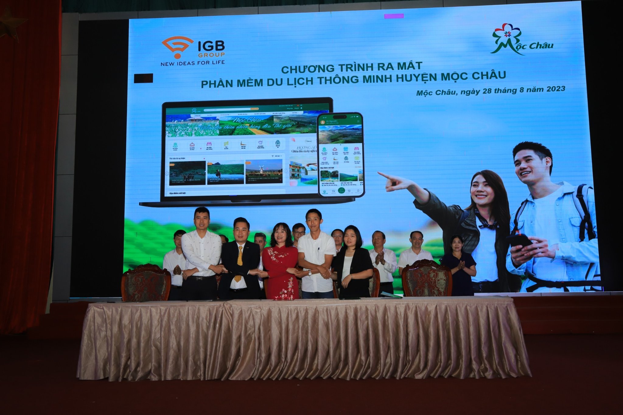 Sáng 28-8, Công ty Cổ phần Truyền thông và Du lịch Mộc Châu Mộc đã dự lễ ra mắt phần mềm du lịch Mộc Châu Tour tại Hội trường UBND huyện Mộc Châu, đồng thời kí cam kết tham gia chương trình, đăng ký thành viên của website.