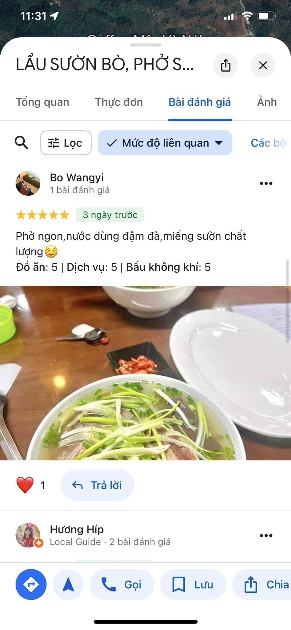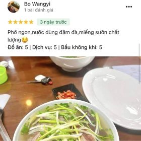 📍 Bo Wangyi: “Phở ngon, nước dùng đậm đà, miếng sườn chất lượng.”