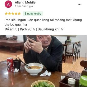 📍 Aliang Mobile: “Phở siêu ngon, quán rộng rãi thoáng mát, không thể bỏ qua.”