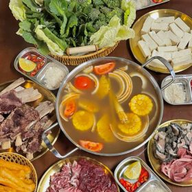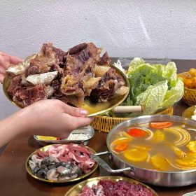 - Lẩu sườn bò: Món “best seller” với sườn bò to ú, thịt nhiều, ăn kèm rau rừng, nấm tươi, bún và nước lẩu đậm đà cay nhẹ. Rất thích hợp đi nhóm đông.